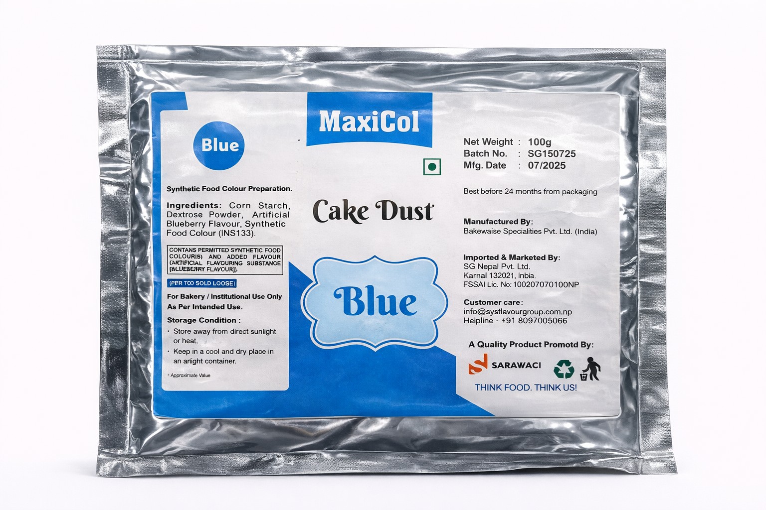 Maxicol cake dust blue is a high quality, food grade colouring powder created to give cakes and desserts a clean, vibrant blue finish. Its fine texture ensures smooth application and consistent colour, making it ideal for professional and home baking decoration.