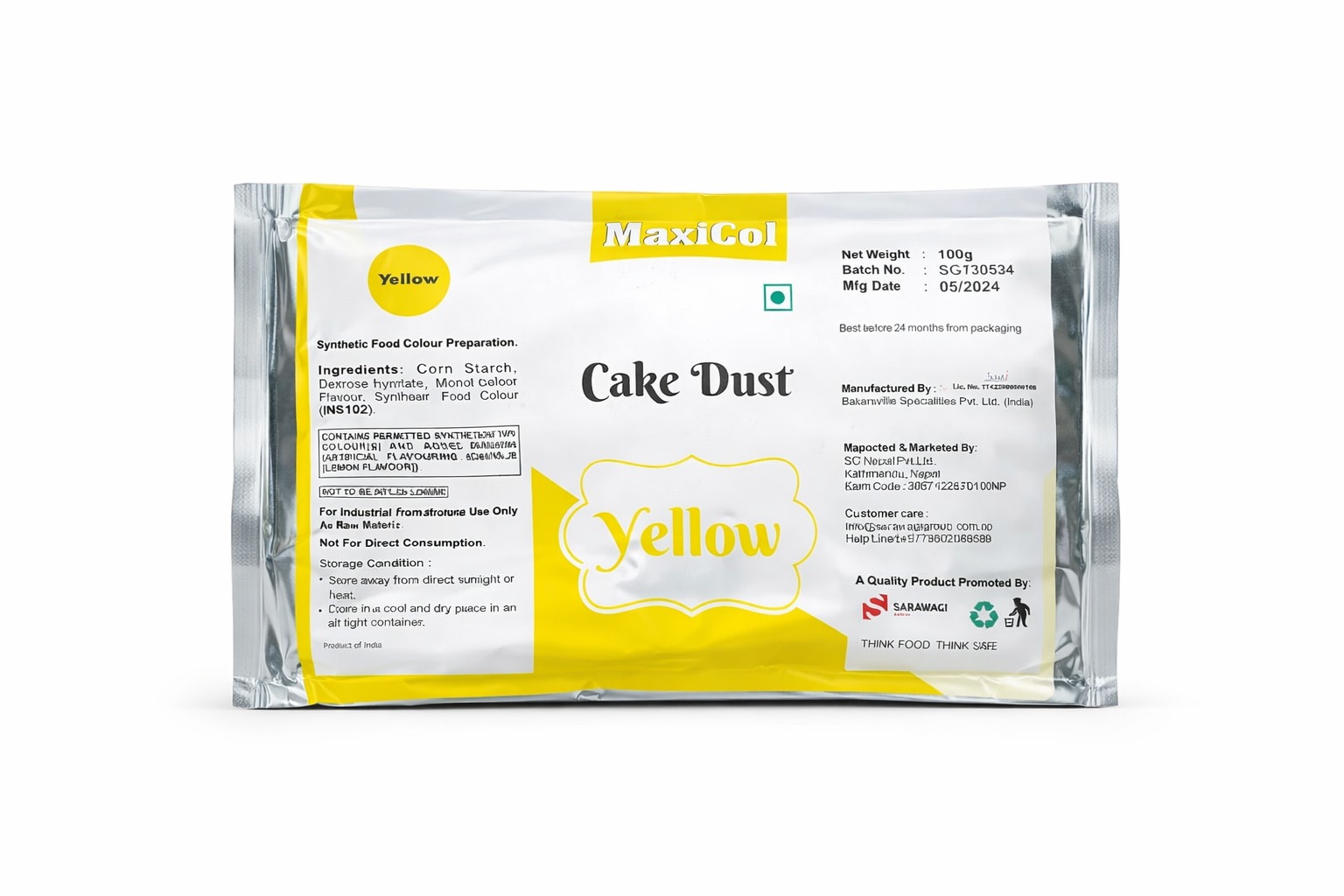 Maxicol cake dust yellow is a high quality food grade colouring powder designed to add bright and cheerful yellow tones to cakes and desserts. Its fine texture ensures smooth application and even colour for a clean, professional decorative finish.