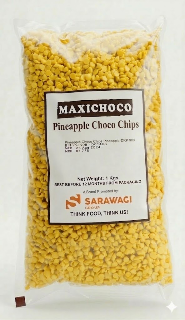 Maxichoco pineapple choco chips are flavourful compound chips crafted with a sweet and tangy pineapple chocolate taste. They offer a smooth texture and attractive appearance, making them perfect for adding a tropical twist to bakery and confectionery creations.