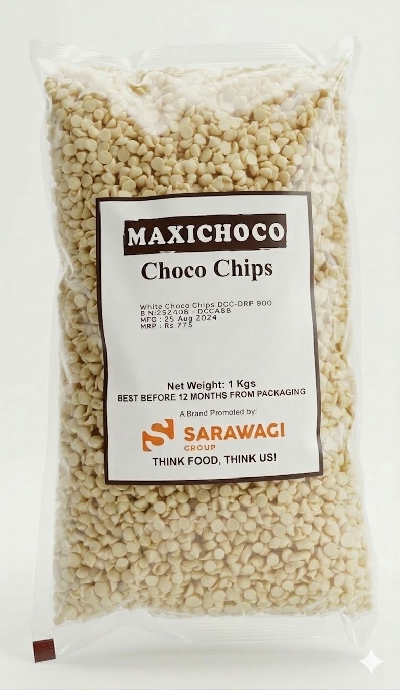 Maxichoco white compound chips are premium-quality white compound chips with a smooth, creamy taste and attractive finish. They are designed to hold their shape during baking while adding sweetness and visual appeal to a wide range of bakery and confectionery products.