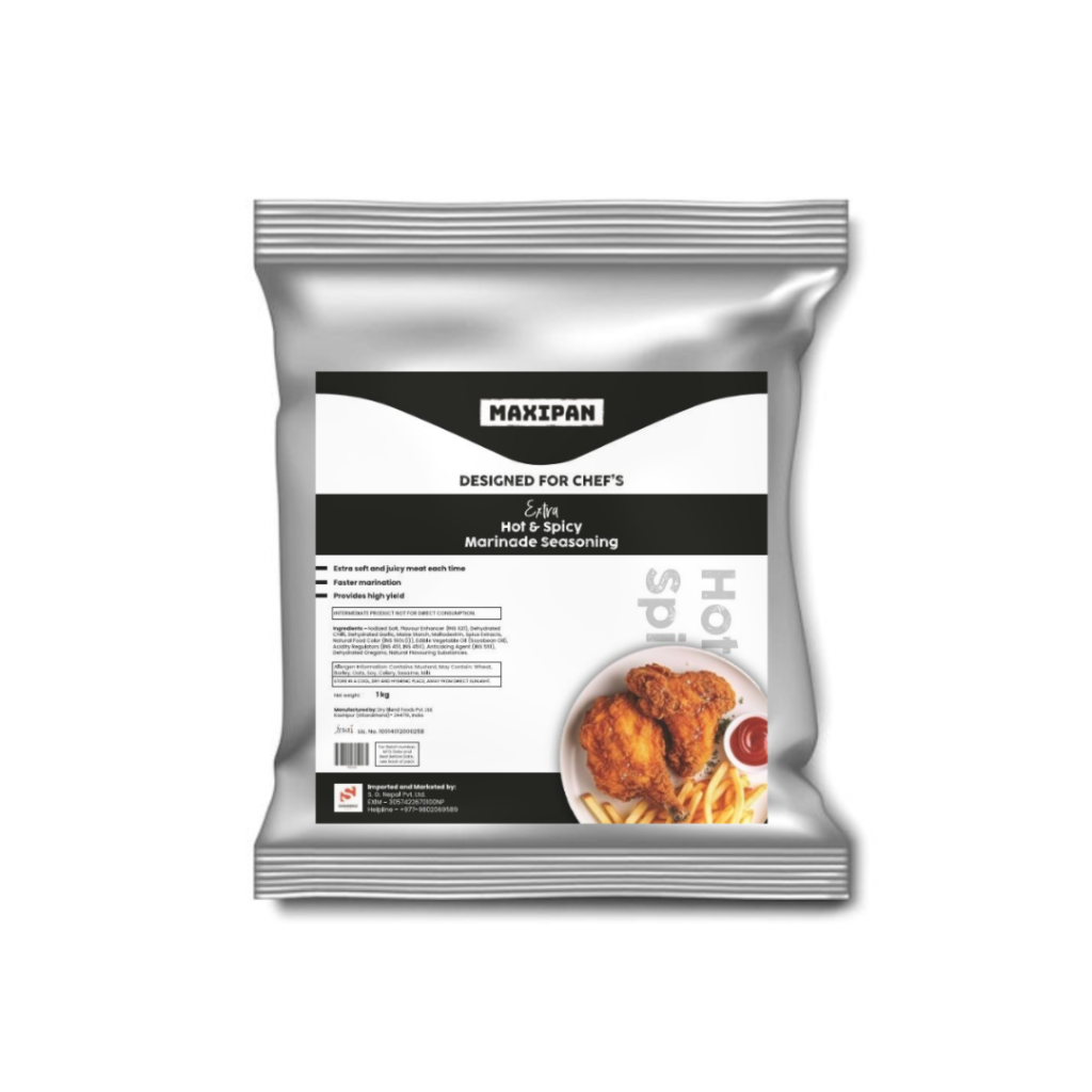 MAXIPAN Hot and Spicy Marinade Seasoning is a premium powder blend crafted for professional chefs and home cooks to infuse meats and vegetables with bold, fiery flavors and tenderizing properties. This 1 kg pack delivers a balanced mix of chili, garlic, onion, black pepper, and aromatic spices for an intense heat with smoky undertones, perfect for marinating chicken, beef, prawns, paneer, or veggies before grilling, frying, or baking. It ensures juicy, crispy results with restaurant-quality taste, ideal for fried chicken, wings, popcorn snacks, burgers, or tandoori-style dishes.