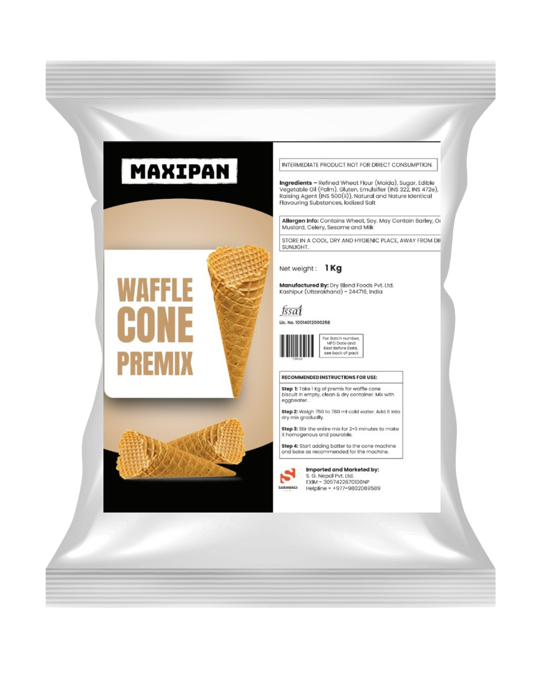 Make your ice cream moments extra special with MAXIPAN Waffle Cone Mix from Maxipan, a ready to use powder that turns into crispy, golden waffle cones in minutes loved by homes, small ice cream parlors, and street vendors all over Nepal.