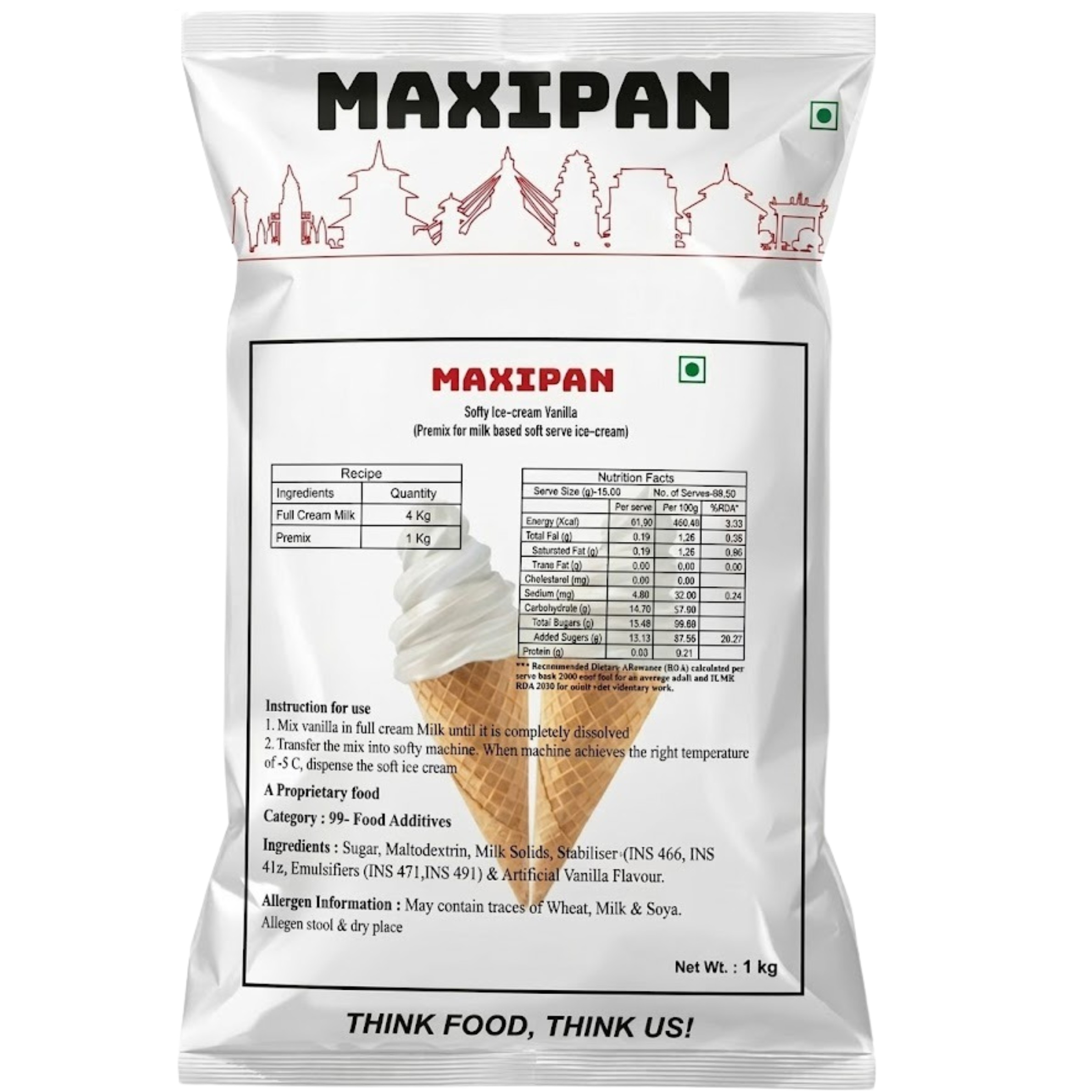 Maxipan Softly Ice Cream Vanilla is a premium quality ice-cream stabilizing and flavoring mix specially formulated to deliver a smooth, creamy, and rich vanilla ice cream experience. With its balanced blend of stabilizers and natural vanilla flavor, this mix ensures excellent texture, improved overrun, and consistent performance for every production batch perfect for professional kitchens and commercial dessert makers.